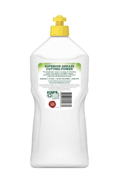 Morning Fresh comes in a range of refreshing scents. One squirt is enough to ensure sparkling clean dishes every time, making us Australia’s #1 dishwashing liquid.Superior grease cutting powerBiodegradableRecyclable and refillable bottleThis is not tested on animalsDerma tested